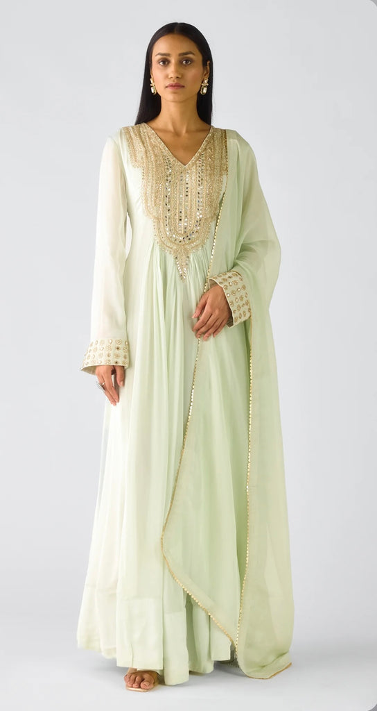 PISTA CHIFFON EMBROIDERED ANARKALI SET BAO-870